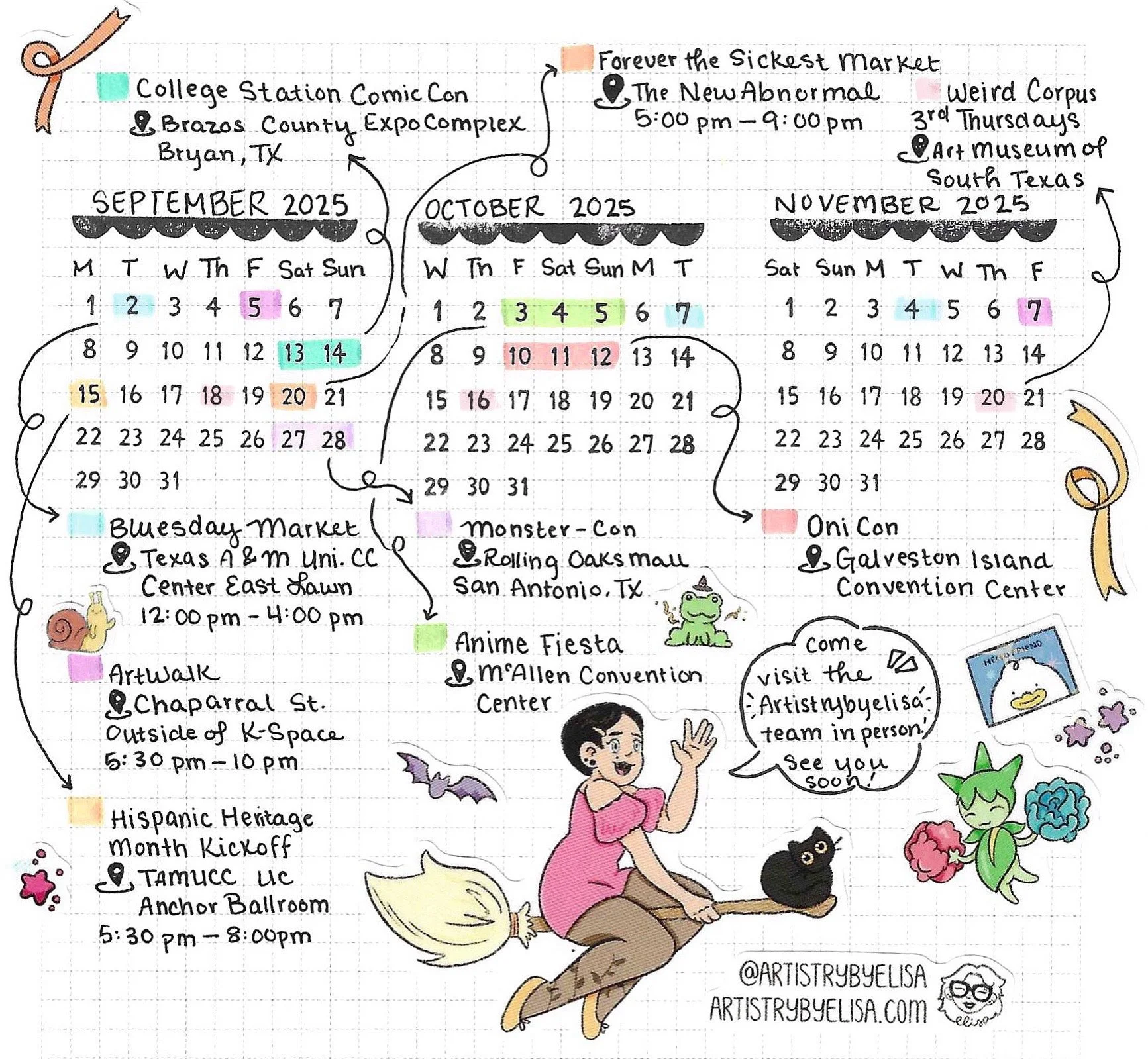 I love taking the Artistrybyelisa show on the road! I’m based in Corpus Christi Texas, but check out my calendar to see where I’ll be tabling next!